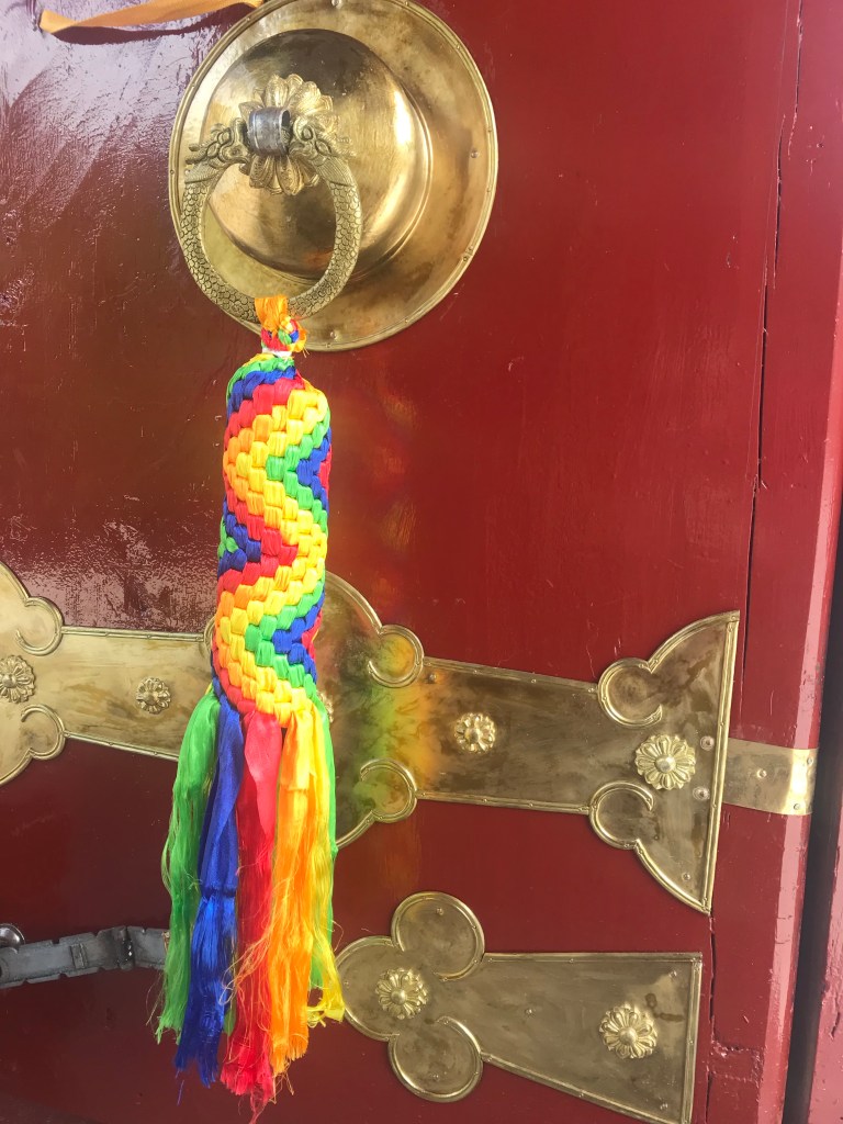 The sand mandala which we saw in Sera monastery near Lhasa is a Tibetan Buddhist tradition involving the creation and destruction of mandalas made from coloured sand. A sand mandala is ritualistically destroyed once it has been completed to symbolise impermanence and that nothing is eternal.