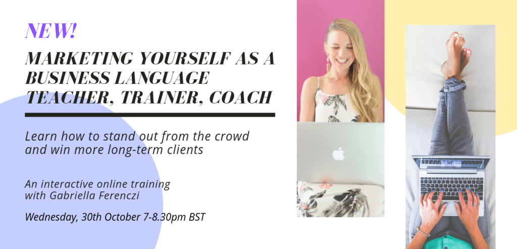 PS: End of October 2019, I’m hosting an exclusive webinar where we’ll address this topic alongside many others. Join me to learn about the most effective marketing strategies if you’re a fellow business language teacher, trainer or coach.