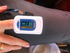 A meditational breathing technique eased the rapid pulse a little (like really, just a little) and we figured out how we can control our oxygen levels by taking big, deep breaths and paying strong attention to our breathing. But the vomit just didn’t want to stop for me.