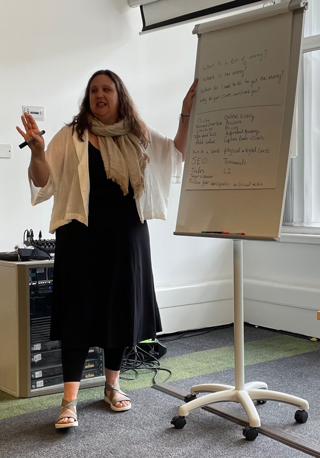 She shared the story of a client who needed his English ‘fixed’ 5 days before leading a meeting in New York. As Judy explained: First the guy needed context. School places too much value on accent and grammar. His intelligibility was excellent, all he needed were strategies, eg. what to do if / when someone doesn’t understand him? There are loads of techniques for clarification and validation. Once he knew how to use them, he was good to go. Two sessions – $500. Happy customer. Judy asked us to think of the value he got from $500. It will last him all his life – a bargain. The message: Fix what you say you can fix and charge for it.
