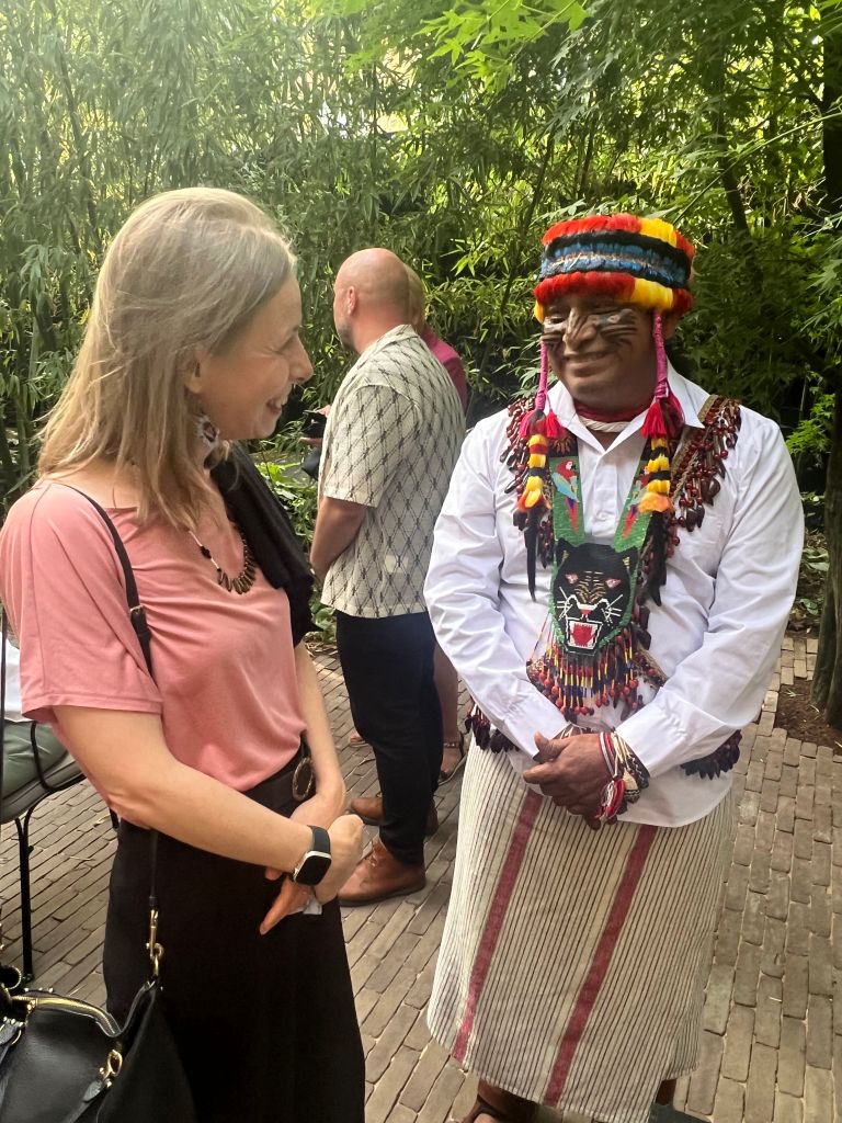 When I learnt that he was in London for London Climate Action Week I put on my Sharamentsa regalia (necklace and earrings I bought from the local ladies) and headed to Extreme Hangout in the hope that I could still find him there.