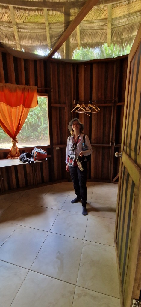 In this cabin, you can hear every hiss, every buzz, every chirp and trill, every rustle and hoot and howl and whisper of the rainforest – day and night. The jungle doesn’t wait until morning to begin. And it doesn’t pause while you sleep. It’s all around you, buzzing and alive.