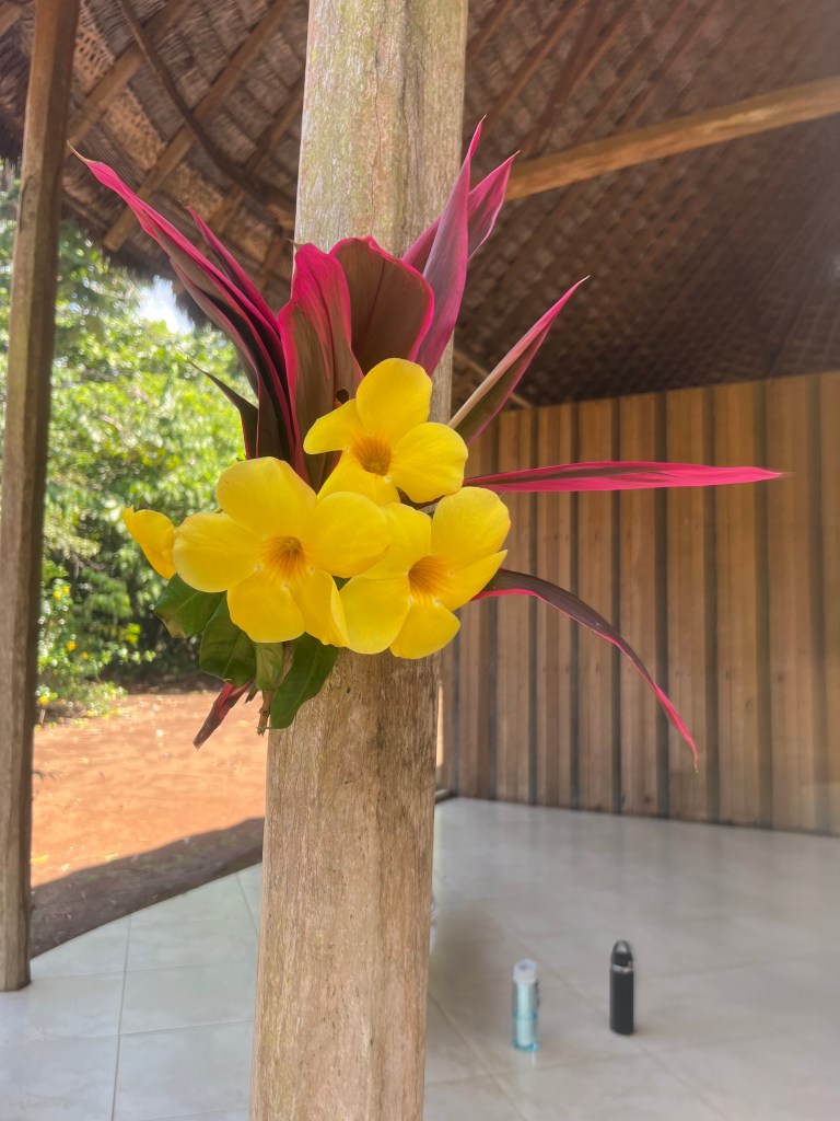 Sukut takes us to our accommodation: a humble thatched cabin decorated with beautiful flowers by the Achuar ladies Marisa and Maira. Clean. Tidy. Simple.